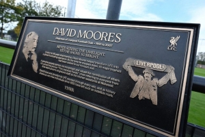 24直播网10月3日讯 利物浦官网消息,俱乐部前主席大卫-摩尔斯纪念牌在柯比学院揭幕。