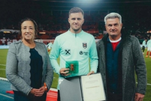 24直播网10月16日讯 莱比锡官网消息,克里斯托夫-鲍姆加特纳在新赛季伊始表现出色,已经打入两球并有一次助攻。周三,这位奥地利国脚从国家队归来时,手中还拿着一个特别的奖杯。不过,这一次吸引人们注意的并不是他的足球成就。鲍姆加特纳因社会贡献而获公平竞赛奖。