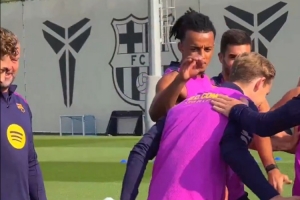 24直播网10月16日讯 巴萨球员在训练时列队欢迎德容和费尔明,并对他们致以拍头礼进行祝贺。