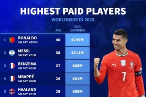 24直播网10月18日讯 德国转会市场统计了球员2025年的收入,并列出榜单,C罗2.39亿欧居首,梅西1.11亿欧次席。