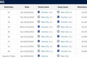 24直播网10月18日讯 英超第8轮,曼城主场对阵埃弗顿。双方近10次交手,曼城8胜2平保持不败,进23球失3球。