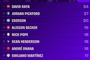 24直播网10月19日讯 据统计,阿森纳门将拉亚自2023/24赛季加盟球队以来,在英超联赛中的表现极具统治力。