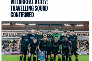 24直播网10月20日讯 曼城公布了10月22日周三客战比利亚雷亚尔的欧冠大名单。