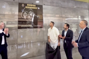 24直播网10月21日讯 比利亚雷亚尔俱乐部在主场外的“金色大道”为青训出身的球员、2024年金球奖得主罗德里举行了画像揭幕仪式,以此向这位成长于俱乐部并在世界足坛取得非凡成就的中场巨星致敬。