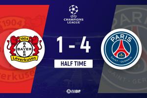 24直播网10月22日讯 北京时间10月22日凌晨3时,欧冠联赛阶段第3轮,巴黎做客拜耳竞技场对阵勒沃库森。上半场,帕乔首开纪录,随后扎巴尔尼送点,格里马尔多罚丢点球,安德里希肘击犯规被红牌罚下,随后扎巴尔尼犯规领到红点套餐,阿莱克斯-加西亚点射扳平,杜埃双响、克瓦拉茨赫利亚传射。半场战罢,巴黎暂4-1领先勒沃库森。