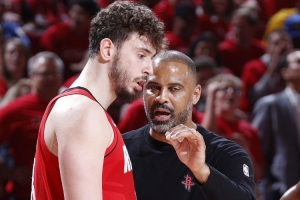 24直播网10月22日讯 NBA常规赛揭幕战,火箭对阵雷霆的比赛已经进行到末节。