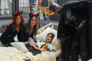因为再过几天就是万圣节,内史密斯也特地COS了蝙蝠侠陪孩子们提前度过特别的万圣节“不给糖就捣蛋”时光,给小朋友送上了画本、毛绒玩具等小礼物。