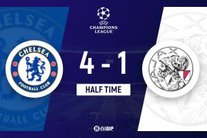 24直播网10月23日讯 北京时间10月23日凌晨3时,欧冠联赛阶段第3轮,切尔西坐镇斯坦福桥球场迎战阿贾克斯。上半场,阿贾克斯队长泰勒染红离场,吉乌首开纪录,凯塞多扩大领先优势,韦霍斯特点射扳回一城后又犯规送点,随后恩佐和埃斯特旺相继点射破门。半场战罢,切尔西暂4-1领先阿贾克斯。