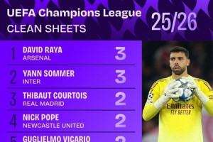 24直播网10月23日讯 Squawka统计了本赛季门将在欧冠比赛中的零封次数和扑救次数,并列出榜单。