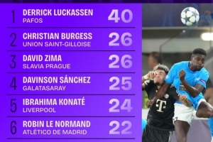 24直播网10月23日讯 本赛季欧冠联赛阶段已战罢3轮,Squawka统计了到目前为止的对抗获胜榜单,卡拉巴赫后卫马修斯-席尔瓦33次第一,比利亚雷亚尔后卫圣地亚哥-穆里尼奥28次第二。