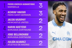 24直播网10月23日讯 本赛季欧冠联赛阶段已战罢3轮,Squawka统计了到目前为止的助攻榜,马赛前锋奥巴梅扬和巴黎后卫阿什拉夫均是3次助攻,分列前二。