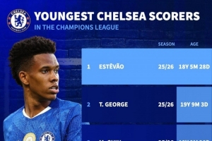 24直播网10月23日讯 德国转会市场列出了切尔西队史欧冠最年轻进球者排名,埃斯特旺居首。