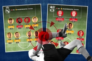 24直播网10月25日讯 据《马卡报》统计,皇马和巴萨两队共计有多达16名球员受到不同程度的身体问题困扰。其中,皇马的吕迪格和阿拉巴,以及巴萨的特尔施特根、加维、莱万、奥尔莫、拉菲尼亚和霍安-加西亚共八人已确定缺席。