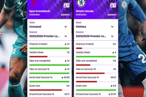 24直播网10月4日讯 本轮英超利物浦将迎战切尔西,数据网站Squawka也盘点了两队中场铁腰赫拉芬贝赫与凯塞多在本赛季英超场均数据,具体如下: