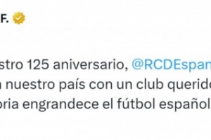 皇马官方社媒写道:“祝贺西班牙人迎来成立125周年纪念日,能拥有这样一家深受全民喜爱与敬仰的俱乐部,是我们国家的荣幸与骄傲,你们的传奇历史为西班牙足球增添了光彩。”