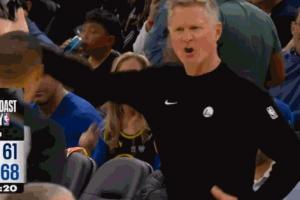 GIF-库里上进 科尔向裁判抱怨