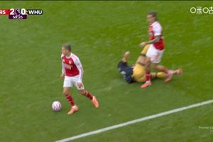 24直播网10月04日讯 英超第7轮,阿森纳vs西汉姆联。比赛第69分钟,帕奎塔倒地后蹬踹卡拉菲奥里,被出示黄牌。