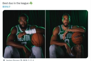 24直播网10月5日讯 凯尔特人官推晒出杰伦-布朗和塔图姆新赛季的定妆照。