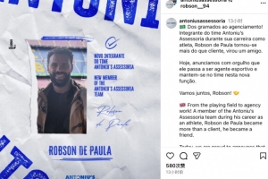 24直播网10月31日讯经纪公司Antoniu’s Assessoria今日官方宣布,前大连英博外援罗伯森加盟,成为该公司旗下经纪人。