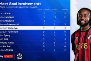 24直播网11月2日讯 天空体育盘点了本赛季欧洲主流联赛球员参与进球榜(进球+助攻),以下为具体榜单(只统计联赛):