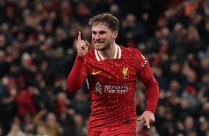 24直播网11月5日讯 欧冠联赛阶段第4轮比赛,麦卡利斯特头球破门,利物浦1-0领先皇马。