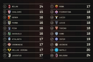 24直播网10月5日讯 据《米兰体育报》报道称,米兰本赛季意甲目前只用了14名首发球员,位列全联赛最少。