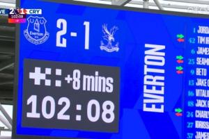 24直播网10月05日讯 英超第7轮,埃弗顿主场2-1逆转水晶宫,终结对手各项赛事19场不败。格拉利什第93分钟奉献绝杀。