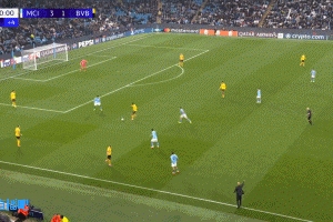 24直播网11月06日讯 欧冠联赛阶段第4轮曼城vs多特第91分钟,谢尔基突破至禁区后起脚射门,皮球折射入网!曼城4-1多特蒙德!