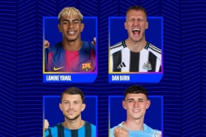 24直播网11月6日讯 欧冠官方列出了今日最佳进球候选,丹-伯恩、萨马尔季奇、亚马尔、福登的进球在列。