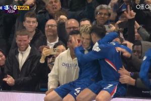 24直播网11月09日讯 英超第11轮,切尔西对阵狼队。73分钟,加纳乔带球奔袭传中,内托轻松推射破门。内托破门后找加纳乔一起再现经典坐广告牌庆祝。