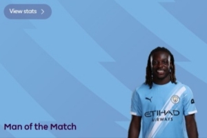 24直播网11月10日讯 2025-26赛季英超第11轮焦点战,曼城3-0利物浦,赛后,多库当选英超官方评选的全场最佳球员。