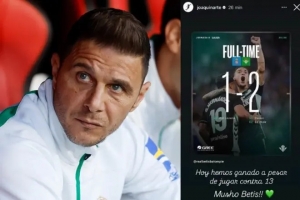 主裁判伊奥苏-加莱奇的执法表现引发许多人不满,其中就包括华金,这位贝蒂斯名宿在Instagram写道:“今天我们尽管是面对13个人比赛,但还是赢了。”