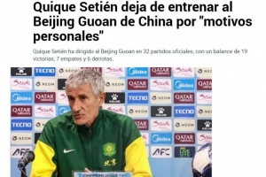 24直播网10月6日讯 日前,西班牙媒体《马卡报》、《世界体育报》报道了北京国安主帅塞蒂恩因“个人及家庭原因”辞职的消息。