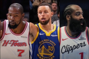 24直播网11月16日讯 火箭随队记者晒出一项数据显示,杜兰特、库里、哈登目前都场均25+且真实命中率60%+,具体如下: