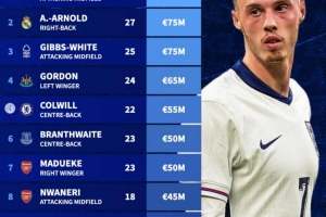 24直播网11月17日讯 德转盘点了缺席本期英格兰名单球员身价榜,具体如下: