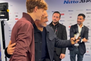 24直播网11月17日讯 近日,尤文图斯主帅斯帕莱蒂观看了在都灵举行的ATP总决赛,他在赛后与赢得冠军的意大利选手辛纳合影留念。