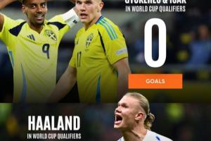 24直播网11月18日讯 欧洲区世预赛已经接近尾声,哈兰德率领的挪威8战全胜挺进世界杯,他本人更是8场16球领跑射手榜,与另一支拥有豪华锋线的球队瑞典形成了鲜明反差。
