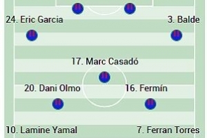 24直播网11月22日讯 北京时间今天23点15分,巴萨将在西甲第13轮比赛中主场对阵毕尔巴鄂竞技。《阿斯报》预测了巴萨此役的首发阵容。