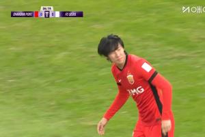 24直播网11月25日讯 亚冠精英联赛东亚区第5轮,上海海港vs首尔FC,比赛第7分钟,蒯纪闻妙传李新翔,后者几乎是一对一面对门将的机会,射门送进了门将怀里。