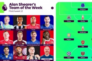 24直播网11月26日讯 英超第12轮战罢,阿兰·希勒评本轮最佳阵容,皮克福德、埃泽、摩根·罗杰斯在列。