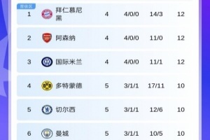 24直播网11月26日讯 欧冠第5轮首日比赛结束,最新积分榜情况出炉。