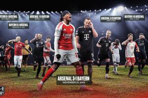 阿森纳上次战胜拜仁是2015年欧冠小组赛主场2-0取胜,此后遭遇5场不胜,包括连续3场1-5惨败。