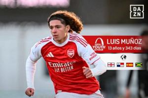 24直播网11月27日讯 昨日U19青年欧冠,阿森纳U19以4-2击败拜仁U19,比赛第85分钟,13岁的穆尼奥斯替补登场,打破了U19青年欧冠最年轻出场纪录。