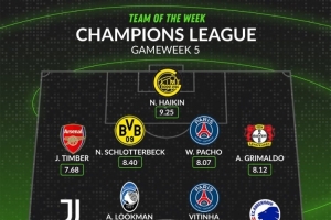24直播网11月27日讯 WhoScored根据球员的评分列出欧冠第5轮最佳阵容,姆巴佩领衔。