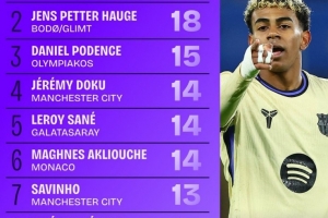 上一篇: 本赛季欧冠射门次数榜:姆巴佩居首,格林伍德次席,哈兰德第三