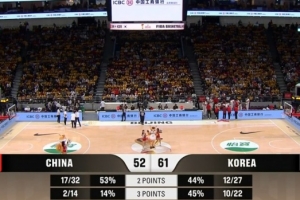 24直播网11月28日讯 男篮世亚预阶段一,中国男篮三节52-61落后韩国男篮。
