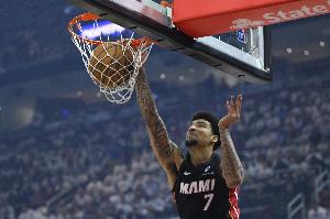 热火年轻内线韦尔此役表现惊艳,他不仅通过劲爆的身体天赋多次上演暴扣,还展现出持球突破和外线三分的能力,进攻端表现得相当全面。