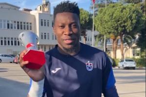 24直播网11月29日讯 今日,曼联外租门将奥纳纳领取了土耳其媒体HT Spor评选的10月最佳球员奖杯。