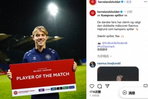 24直播网10月10日讯 丹麦国家队官方宣布,霍伊伦当选6-0白俄罗斯的球迷票选最佳球员。