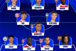 24直播网12月12日讯 欧冠官方公布了本轮最佳阵,马杜埃凯、格林伍德、奥赖利、孔德等人入选。